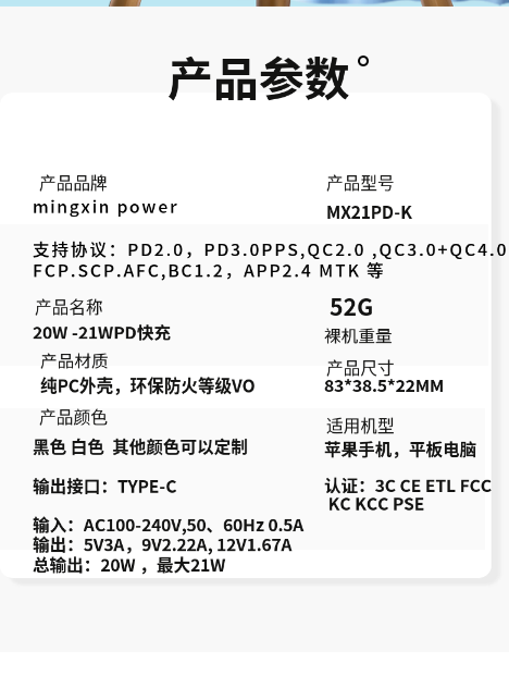MX20WPD快充過3C CE ETL FCC PSE KC KCC認證 高光面超薄僅22mm